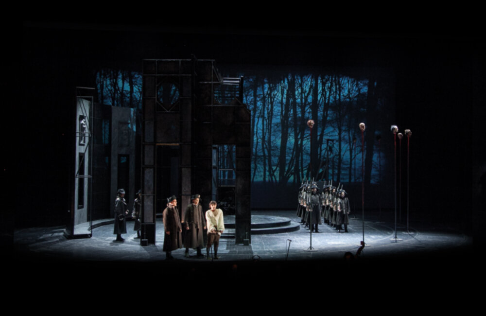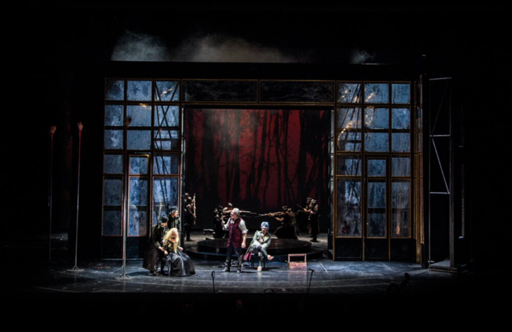 Les projections, pensées comme des prolongements visuels délicats, sont tissées au cœur d’une scénographie complexe — plateau tournant, deux cercles mobiles se superposant — permettant de déplacer décors, accessoires et personnages. Ces images, mêlant éclairage et textures symboliques, renforcent élégamment la tension entre enjeux politiques, passions amoureuses et trahisons familiales, sans jamais surcharger l’espace scénique
