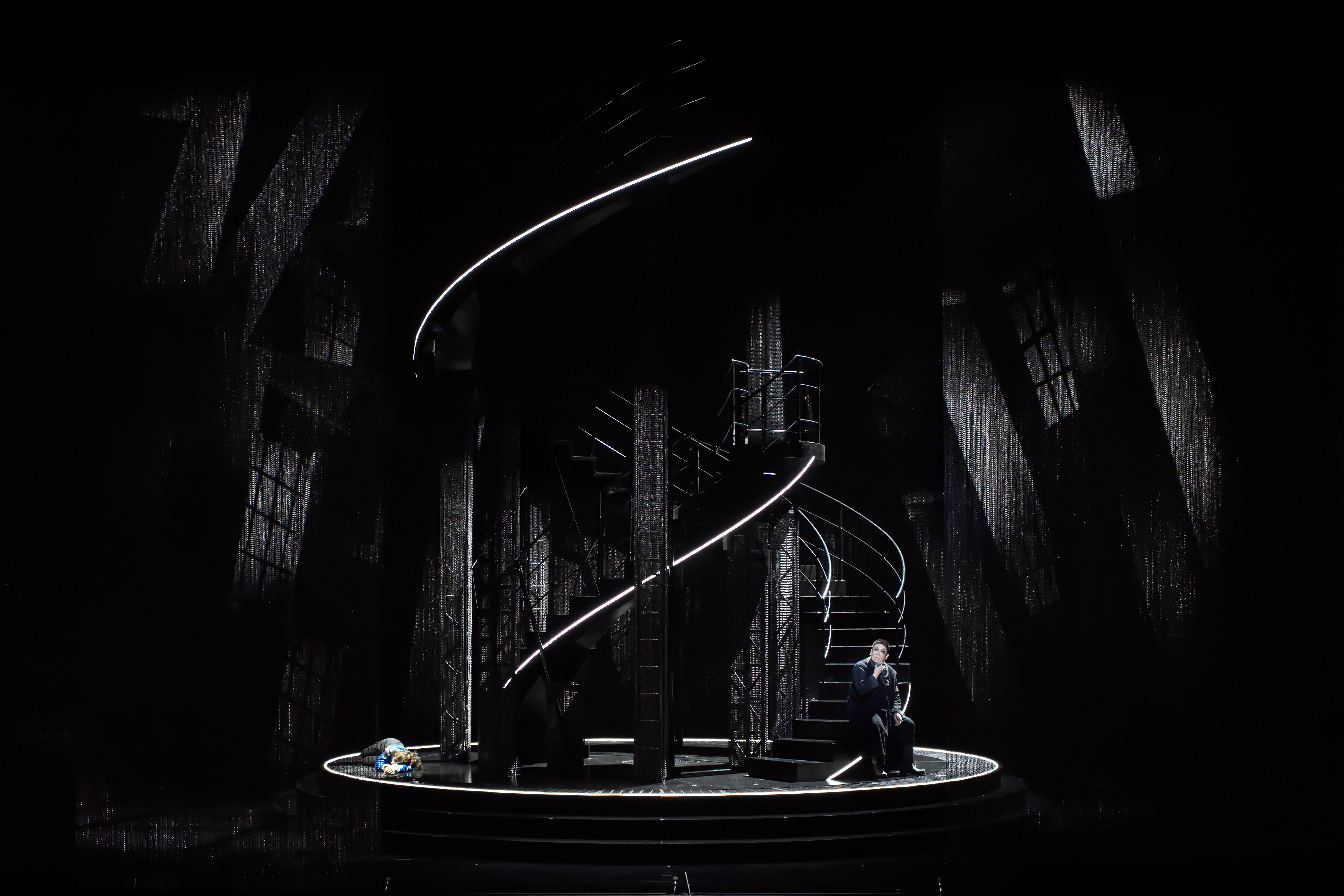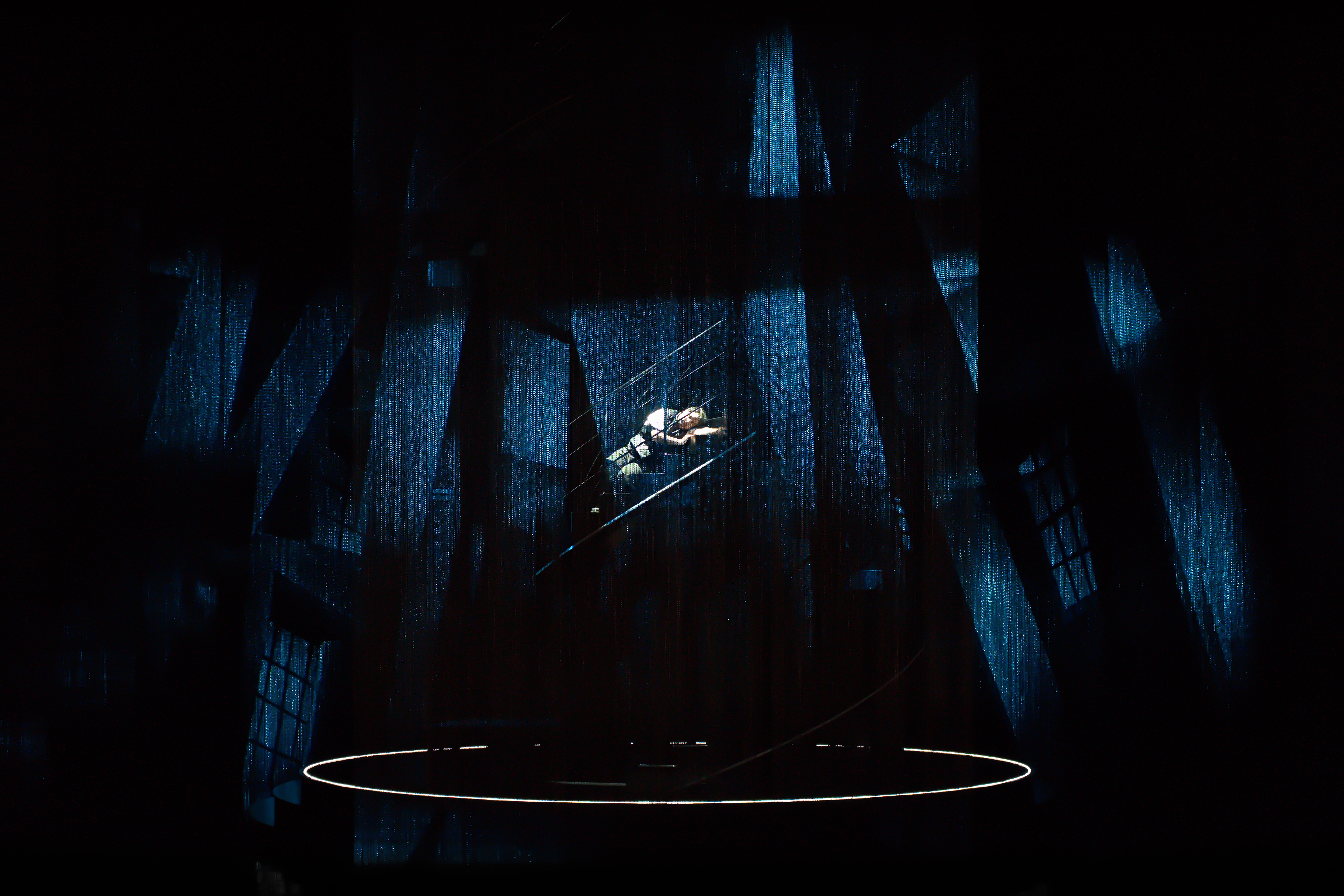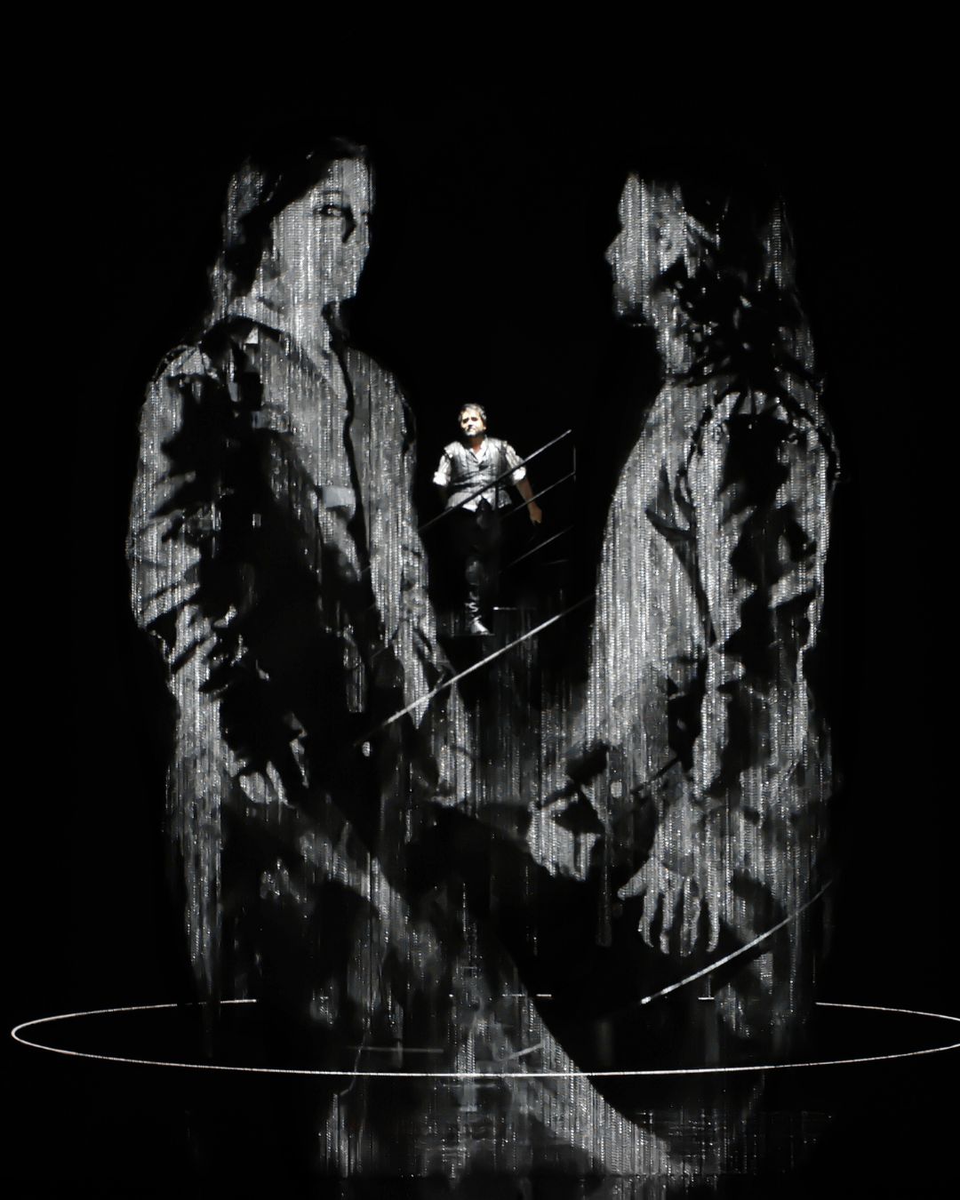 Dans un cadre scénique épuré où la machinerie de l’ombre dialogue avec la lumière, le travail visuel du Studio A+E contribue à faire bannir les frontières entre espace intérieur et extérieur, entre réel et rêve, être et souvenir. Le chorale, l’orchestre, les personnages, notamment ceux de Milada, Jitka et Zdeněk, trouvent un écho dans ce jeu d’ombre et de reflet. Chaque projection fonctionne comme un prolongement émotionnel du texte chanté, soutenant la dramaturgie, accentuant la tension, laissant circuler les images de liberté, de perte et de désir avec intensité. Une création vidéo immersive qui, tout en respectant la tradition, offre une lecture contemporaine et symbolique de l’œuvre.