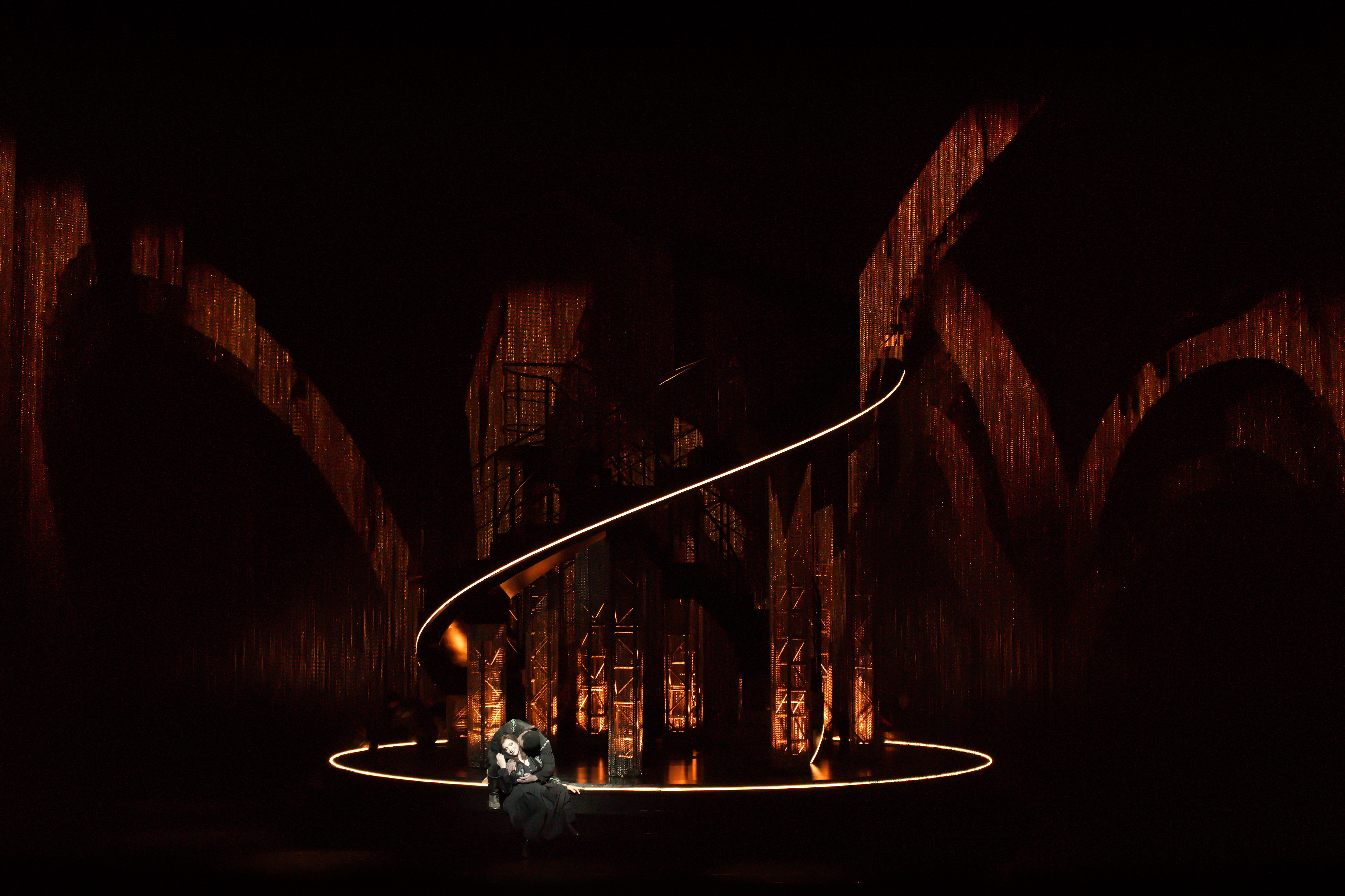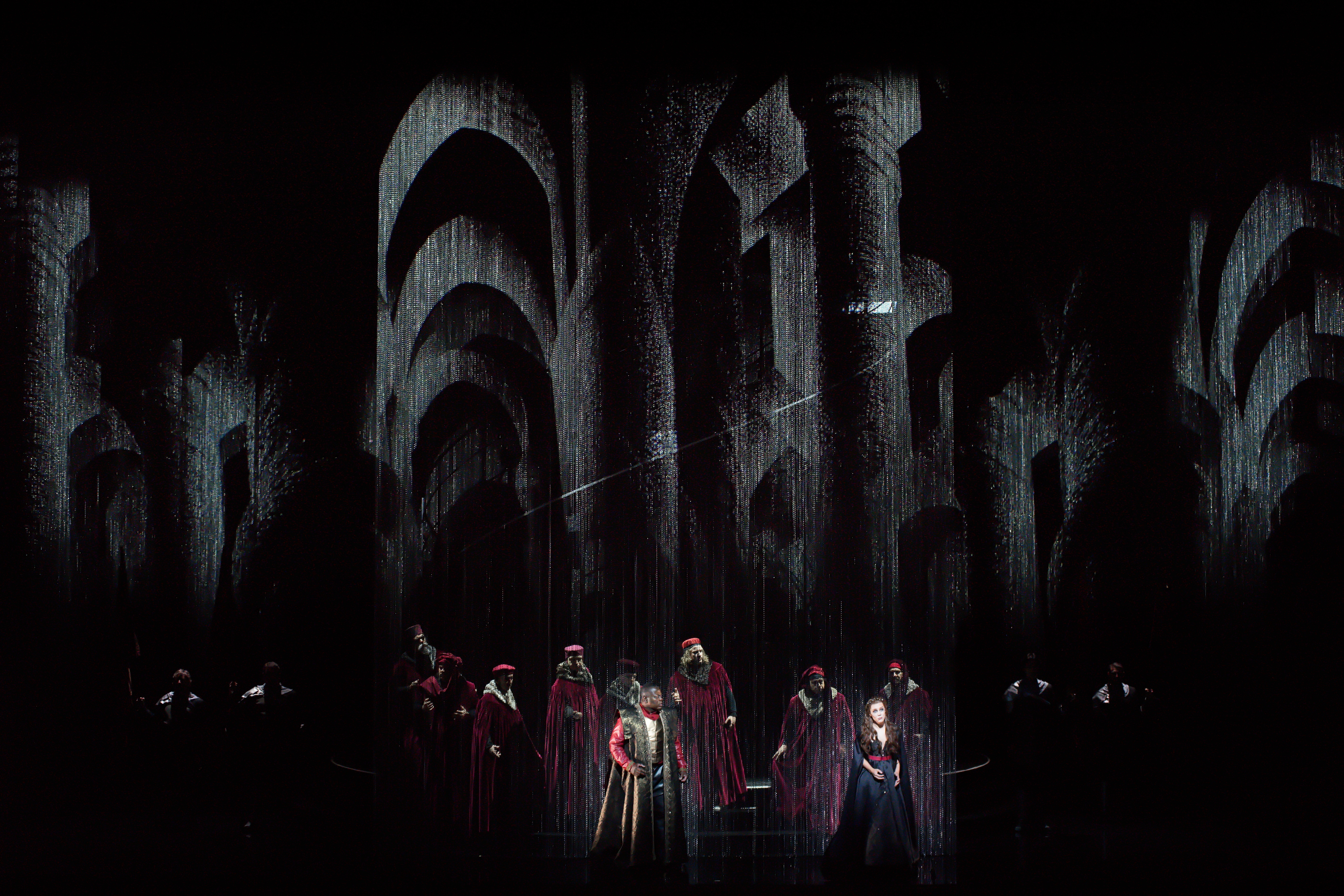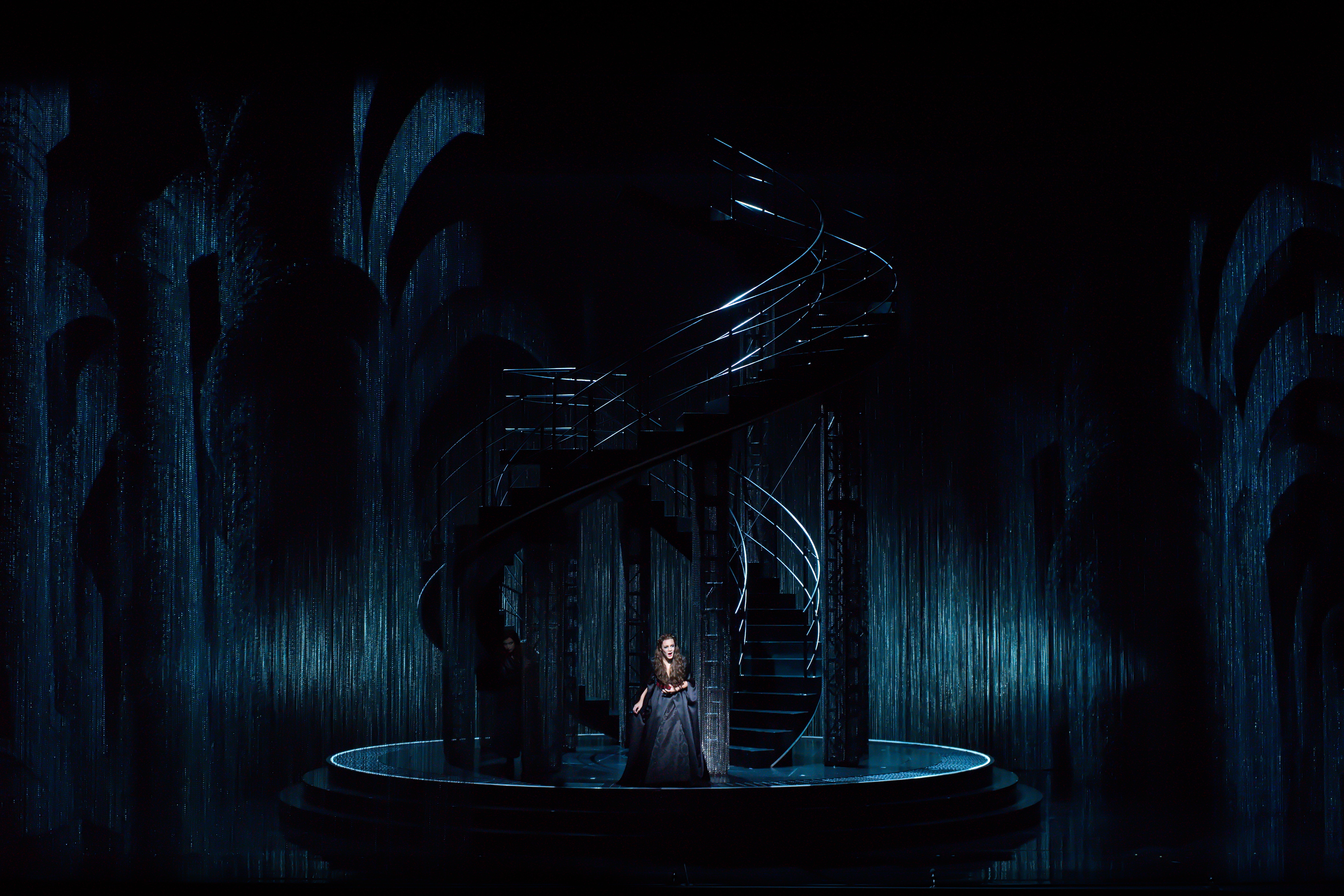 Dans un cadre scénique épuré où la machinerie de l’ombre dialogue avec la lumière, le travail visuel du Studio A+E contribue à faire bannir les frontières entre espace intérieur et extérieur, entre réel et rêve, être et souvenir. Le chorale, l’orchestre, les personnages, notamment ceux de Milada, Jitka et Zdeněk, trouvent un écho dans ce jeu d’ombre et de reflet. Chaque projection fonctionne comme un prolongement émotionnel du texte chanté, soutenant la dramaturgie, accentuant la tension, laissant circuler les images de liberté, de perte et de désir avec intensité. Une création vidéo immersive qui, tout en respectant la tradition, offre une lecture contemporaine et symbolique de l’œuvre.