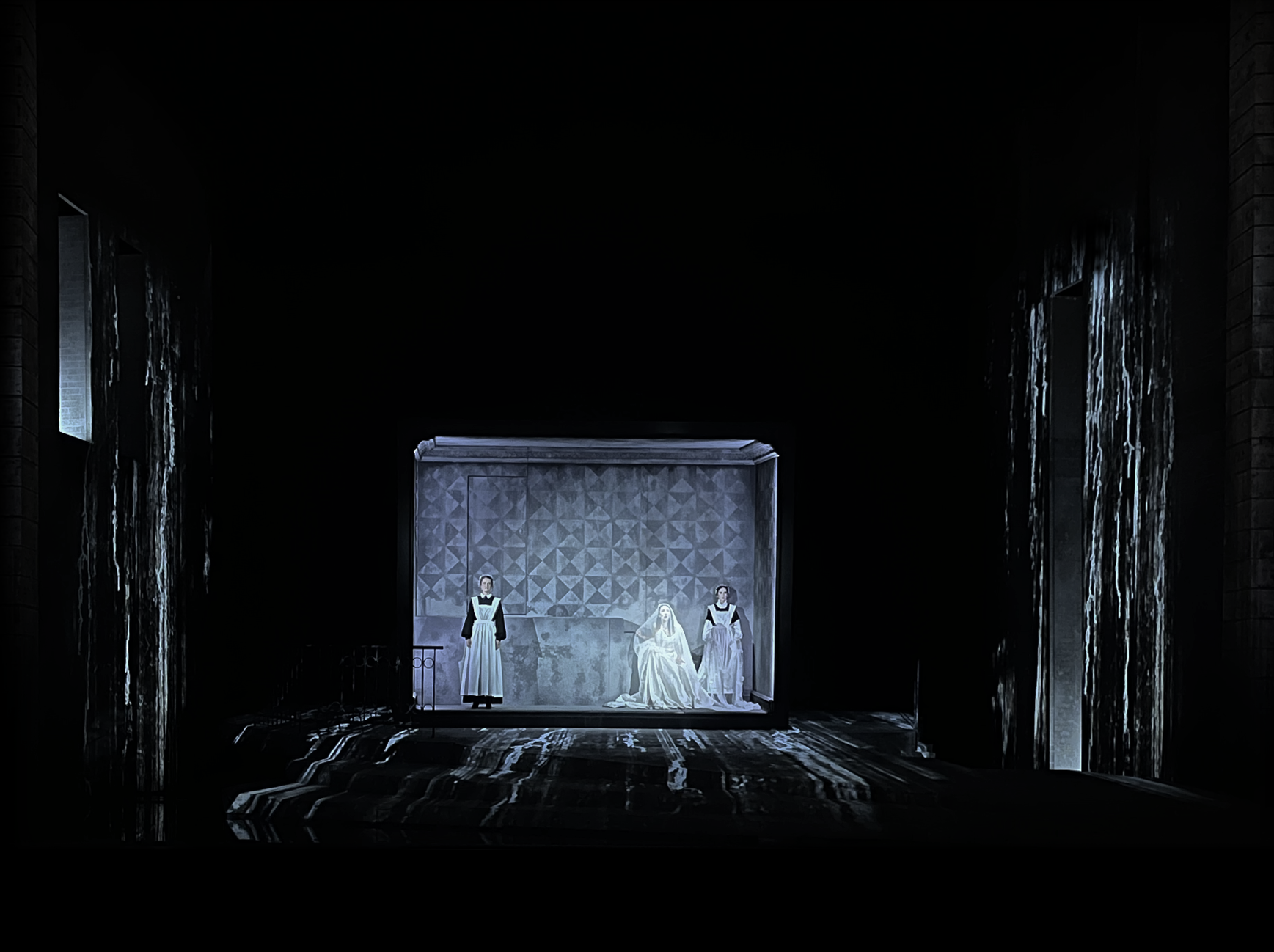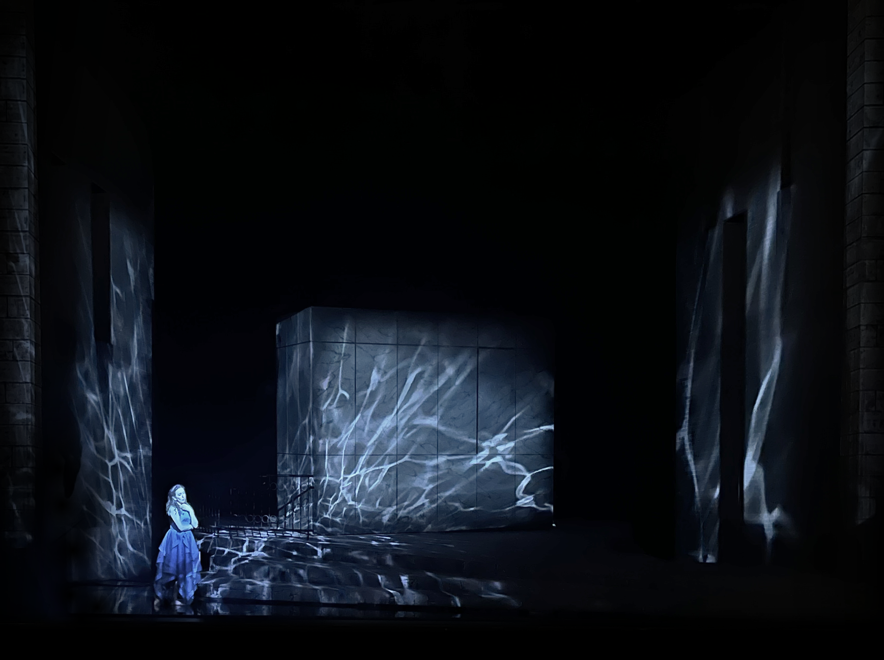 Dans cette nouvelle production de I Capuleti e i Montecchi de Bellini, présentée au Théâtre Royal de Liège, le Studio A+E a apporté une dimension visuelle délicate et essentielle au plateau. Sous la direction scénique d’Allex Aguilera, la scénographie épurée — où se détache surtout la lumière raffinée de Luis Perdiguero — offrait un écrin poétique aux images projetées, créant un équilibre parfait entre le visuel et la musique
