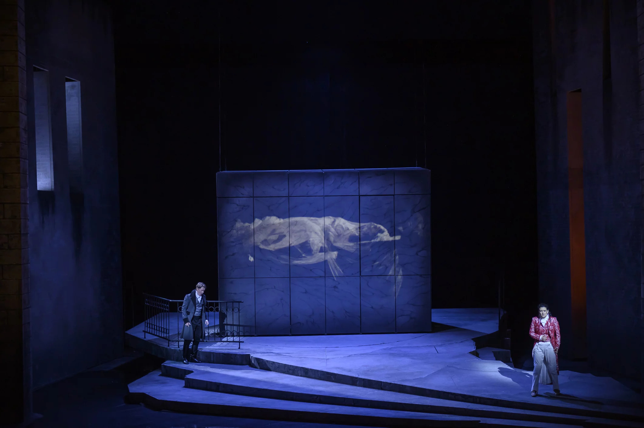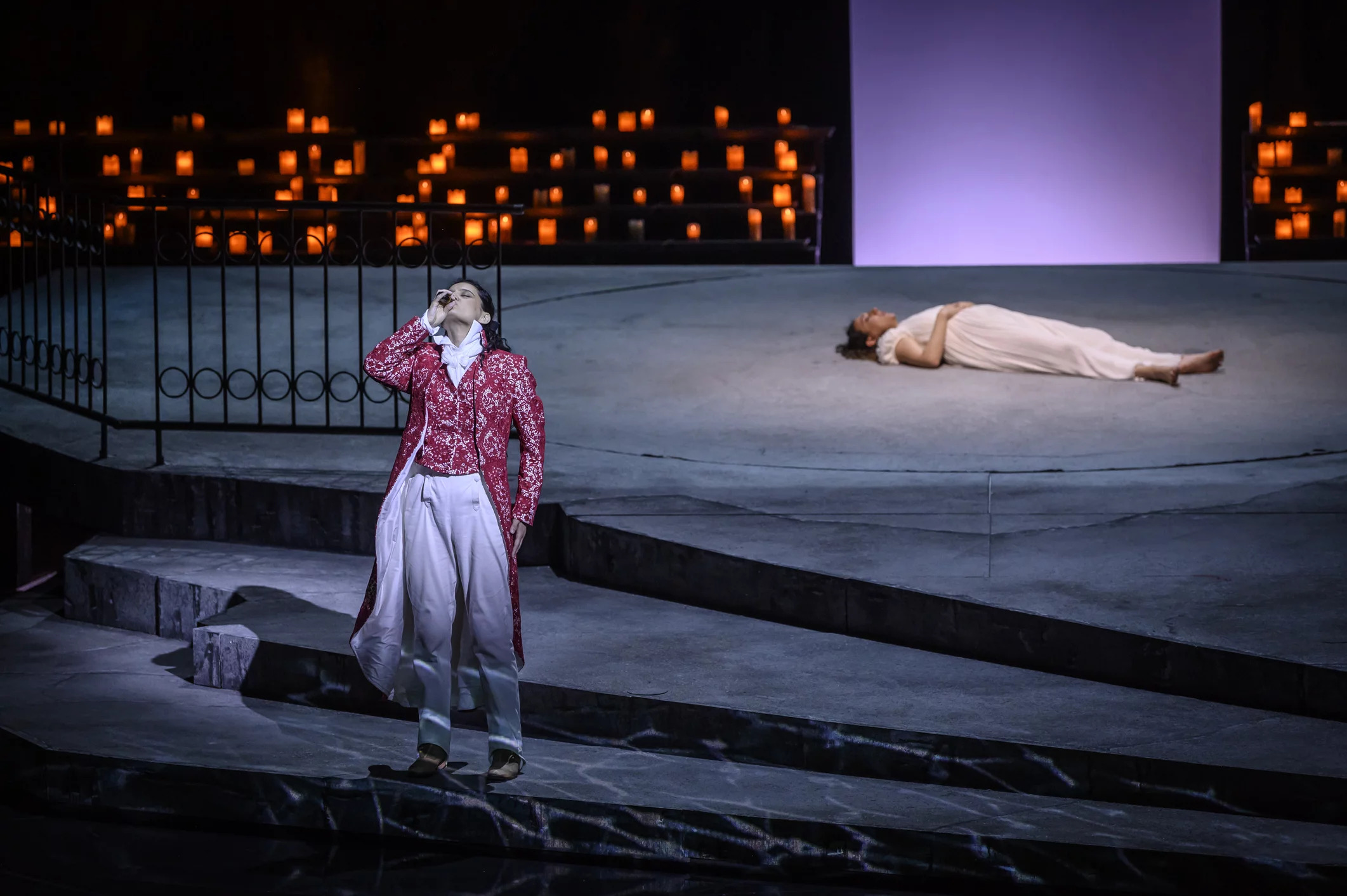 Les créations vidéo, intégrées comme un prolongement émotionnel, soulignaient les tensions intimes et tragiques du récit : l’amour interdit entre Romeo (Raffaella Lupinacci) et Giulietta (Rosa Feola), confrontés aux dynamiques familiales. Elles amplifiaient les moments clés — les duos et arias poignants, les temps forts choraux — sans jamais diminuer la beauté lyrique des voix ni la vérité dramatique du jeu