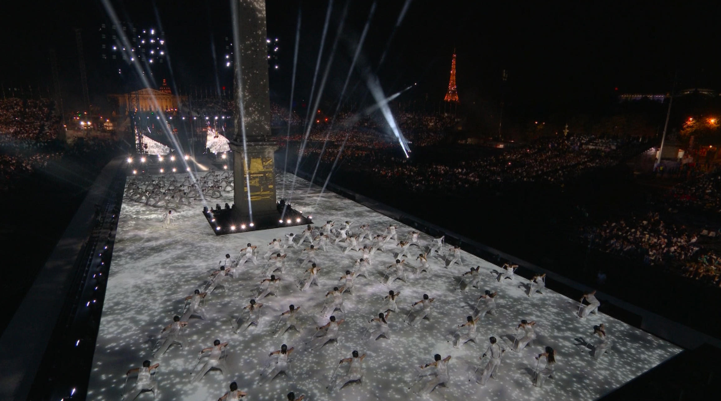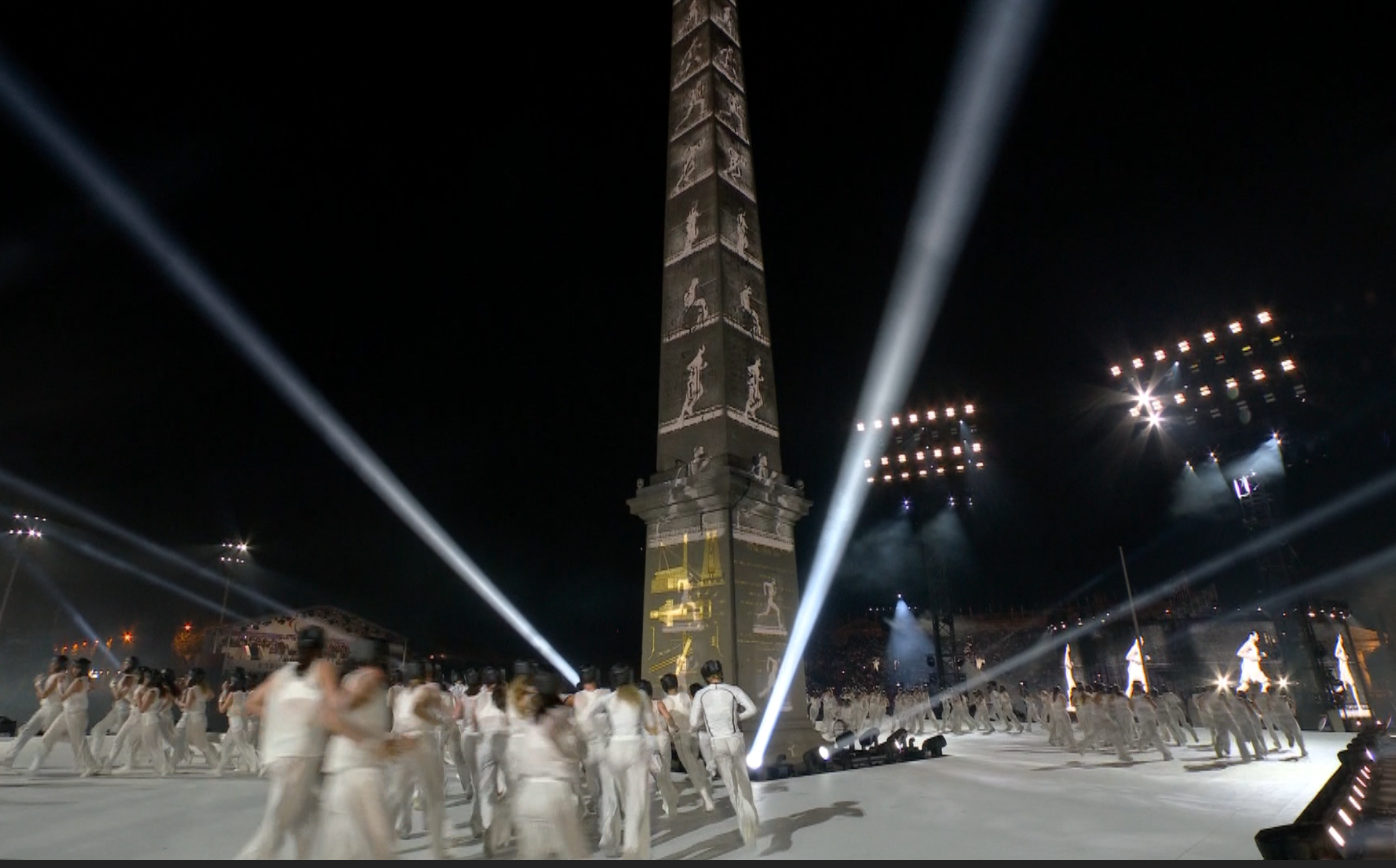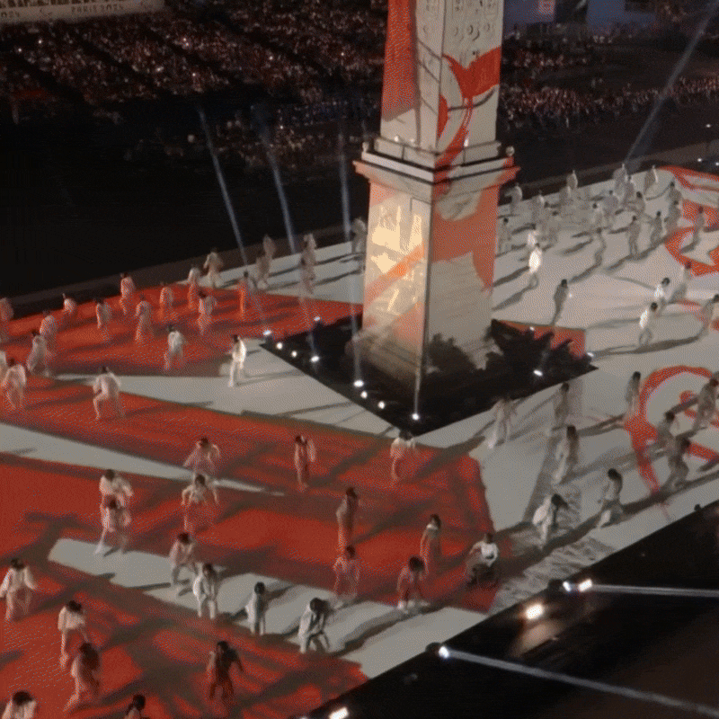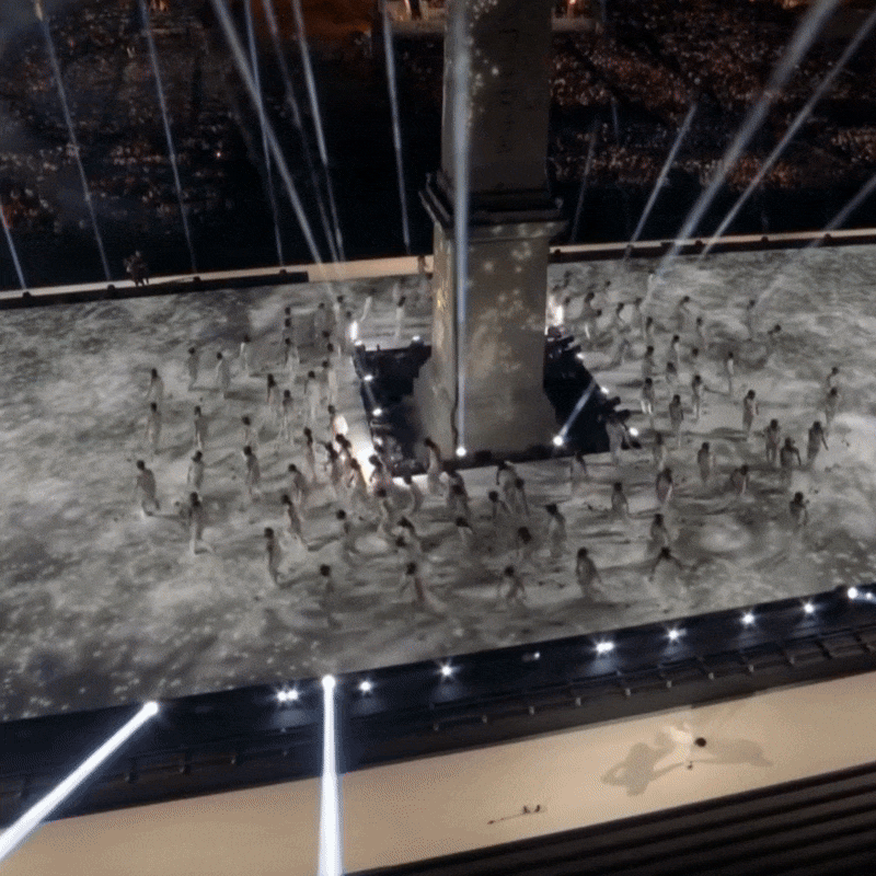 Sous la direction artistique de Thomas Jolly et en collaboration avec le chorégraphe Alexander Ekman, le spectacle retraçait un voyage symbolique de la discorde vers la concorde, thème central du récit. Le travail du Studio A+E a consisté à créer des visuels immersifs en dialogue avec les monuments, notamment l’Obélisque de Louxor, devenu totem narratif, mais aussi à enrichir la scénographie par des projections au sol et des écrans cylindriques en LED synchronisés avec les mouvements des danseurs.
