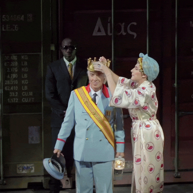Les projections imaginées par le Studio A+E accompagnent les situations comiques et les envolées lyriques en jouant sur des images vives, colorées et parfois volontairement décalées, à l’image de l’humour flamboyant de l’œuvre. Elles prolongent la fantaisie de la mise en scène tout en offrant des respirations visuelles qui dynamisent l’espace scénique et dialoguent avec les costumes et décors flamboyants.